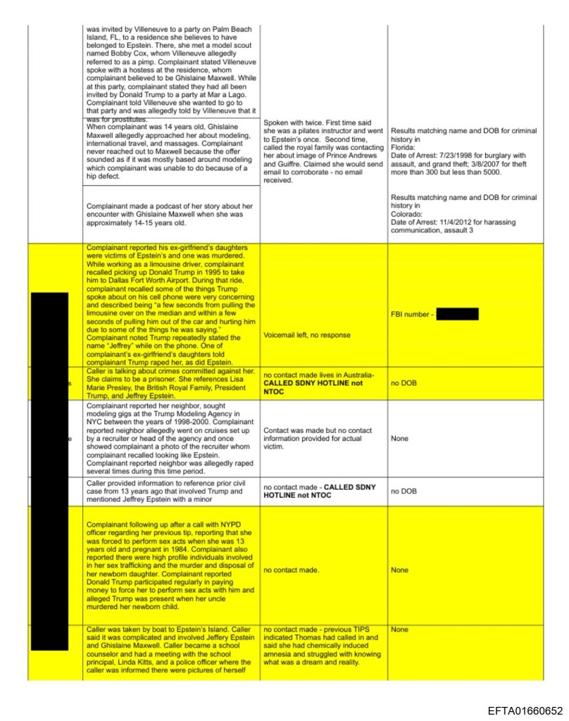 EFTA01660651 includes the criminal history column almost entirely unredacted. In this file, it’s clearly shown that most tipsters had no criminal history. Of the few who had charges, the severity and age of the crimes are present in most cases.